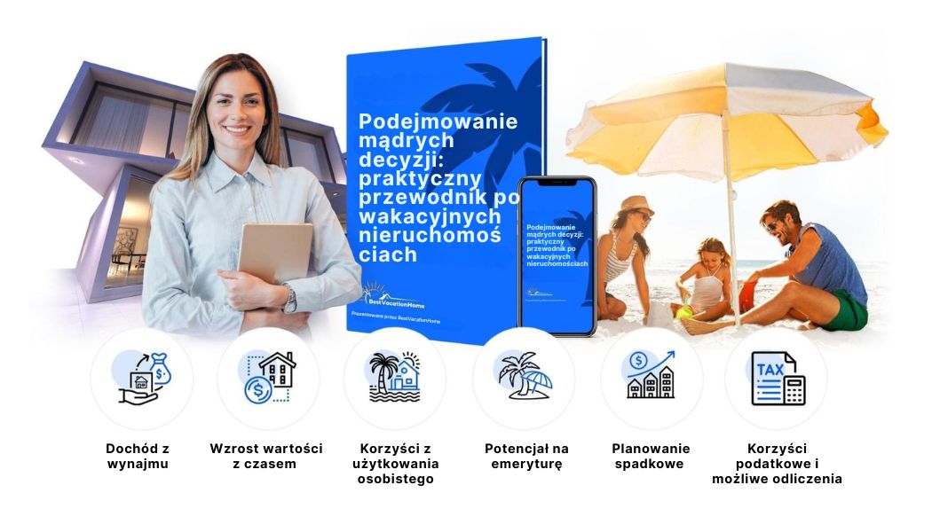 Wyobraź sobie, że masz własną, piękną nieruchomość wakacyjną – idealnie dopasowaną do Twojego stylu życia i przynoszącą dochód z wynajmu, gdy z niej nie korzystasz. Ten bezpłatny poradnik pokaże Ci, jak zamienić to marzenie w rzeczywistość