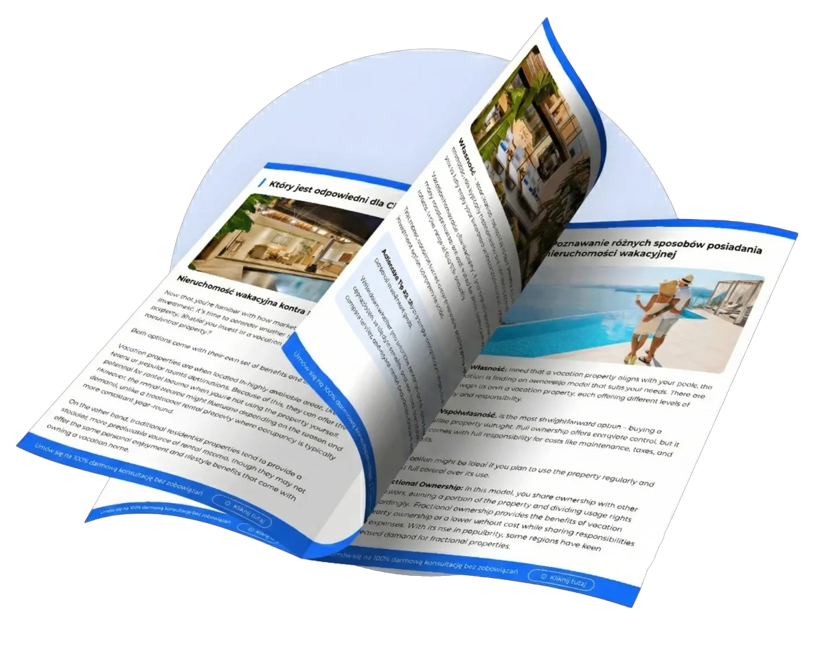 Wyobraź sobie, że masz własną, piękną nieruchomość wakacyjną – idealnie dopasowaną do Twojego stylu życia i przynoszącą dochód z wynajmu, gdy z niej nie korzystasz. Ten bezpłatny poradnik pokaże Ci, jak zamienić to marzenie w rzeczywistość.